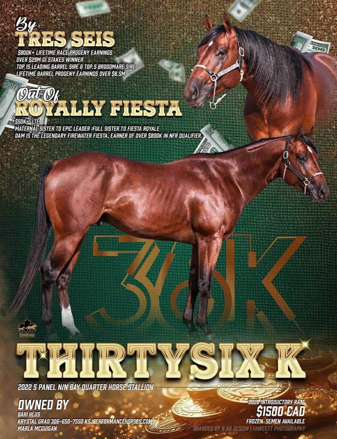With elite genetics on both sides of his pedigree, Thirtysix K represents a rare opportunity to produce offspring with speed, correct conformation, strong bone, and exceptional minds, making him highly desirable for racing, rodeo, and performance programs.